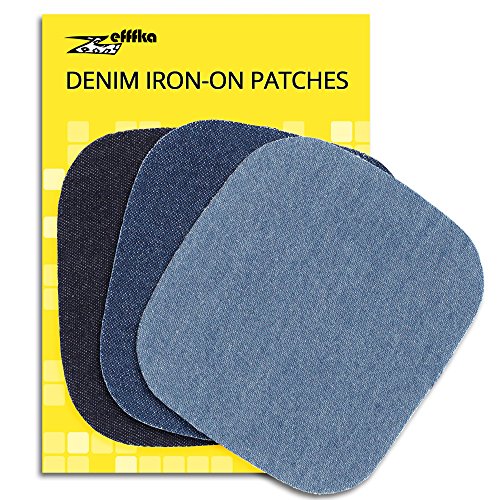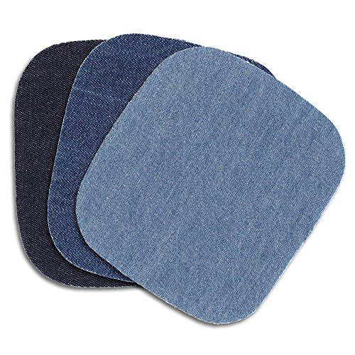 Zefffka Denim Iron On Jean Patches No-Sew Shades Of Blue 3 Pieces Assorted Cotton Jeans Repair Kit 4-1/4" by 3-3/4"