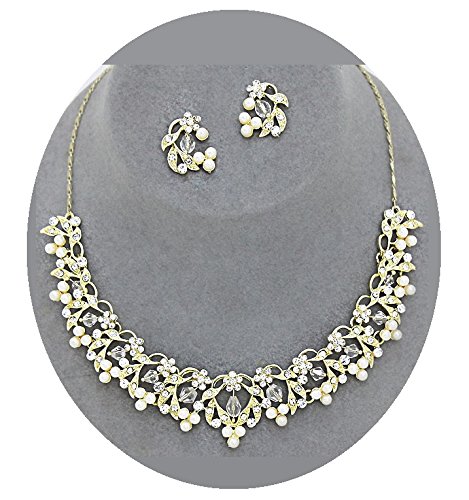 Intricate Floral and Leaf Pattern Bridal Bouquet Necklace Set