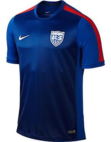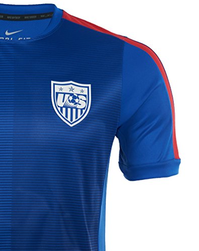 -. Binding : Misc. -. Brand : -. Color : Game Royal, University Red, White -. Department : mens -. Feature : Short-sleeve training top in Dri-FIT with sublimated graphic front panel and cut-and-sew replication of shoulder stripe in select. Embroidered Swoosh design trademark and heat transfer training logo with authentic jocktag and language of football neck tape. / 100% Polyester, Dri-Fit -. Label : -. Manufacturer : -. MPN : 643865-480 -. NumberOfItems : 1 -. PackageQuantity : 1 -. PartNumber : 643865-480 -. ProductGroup : Sports -. ProductTypeName : SPORTING_GOODS -. Publisher : -. Size : Large -. Studio : -. Title : USA Mens Squadra Short Sleeve Prematch Top 2 Soccer Jersey (Blue)
