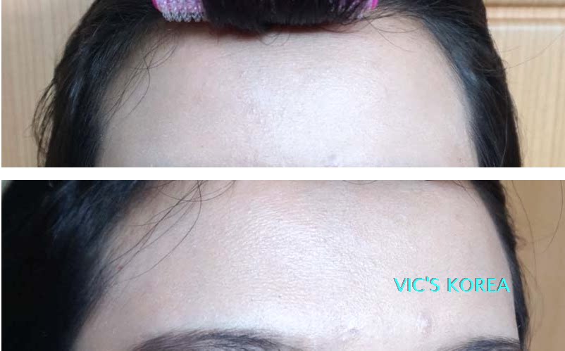 用下面的小粉扑沾取,延发际线涂抹,按个人情况