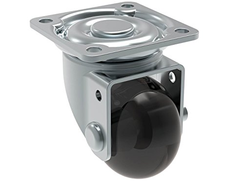 Schioppa, GLAP 100 GEL Black, 1.4" (35 mm) Swivel Non-Brake Caster, Non-Marking Polyurethane Whl, 65 lbs, Plate 1-21/32 x 1-21/32" (BH 1-1/4 x 1-1/4")