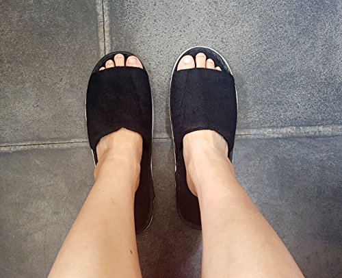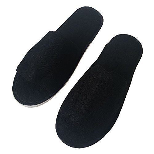 (CleanBay)/Nail Tools/Spa Slippers/DIRECT FROM USA/2 Pairs Open Toe Towel Terry Cotton Cloth Slippers Adults Unisex Indoor Slippers (Black)