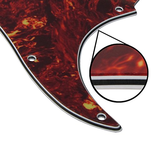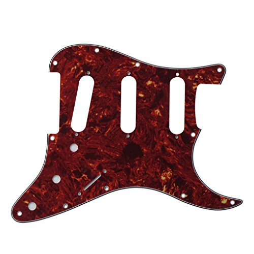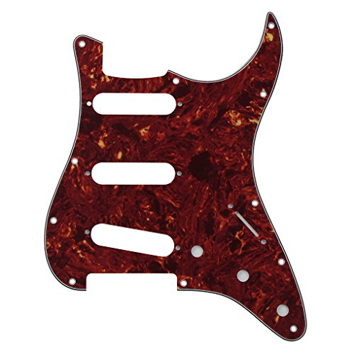 Product Description Feature: * For US Modern Fender Strat Stratocaster style guitar or similar.* With pure aluminum foil shield on the backside, not the common aluminum-foil paper on the market, better shielding property and anti-interference.* All materials are environmentally friendly, thermostability, no smell. Multi-layer plates are pressed under high temperature and pressures, to make them close integration between each layer, will not appear curly, deformation, or separation of different layers.* Excellent product process ensure the edge of the smooth and structured.Two layers of protective films on the front of pickguards, anti-scratch to protect the guitar.Specification:* Style: SSS(single/single/single coil) style pickguard; 11 screws holes in the side of pickguard.* Material: 4Ply Tortoise Plate and PVC* With pure aluminum foil shield.* Color: Real Red Tortoise Color* With protective film on the surface, while using please split it off.* Note:Item's color might be different from the picture because of the aberration.Package Includes:1 x guitar pickguard 0
