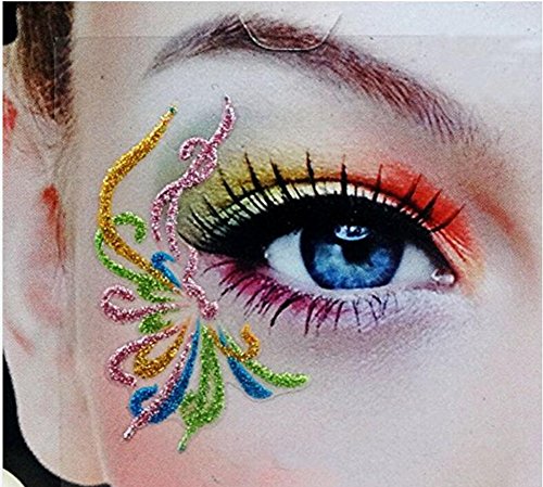 -. Feature : Self-adhesive stick-on eye designs can be cut and customized to fit your eyes, so you can easily achieve the perfect look! / Our temporary makeup is applied quickly, and easily, simply by adding water to the paper backing. Your eye designs will appear in 30 seconds! / These eye sticker are a great choice for Halloween, masquerade balls, cosplay, festivals, concerts, or any type of costume. / They can even be worn out on the town for a fun, creative look during the day, or a trendy look for the club! / Package include:3pairs 6pcs Eyeshadow Sticker 1#,9#,13# Different Models ; Size:Length of about 4 cm, with self-adhesive.