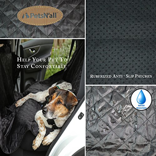 - Feature : Protect your car seats from pet hair, dander and dirt with the PetsN'all Pet Car Seat Cover / Large size cover fits seat, seat back and floor; holds in place with straps and stay-put devices / Fold it in half for a single seat or spread it out in an SUV or truck; includes passenger-pet-split zipper so people and pets can share the back seat / Soft spun polyester fabric, padded and quilted for your pet's comfort. They'll love going for a drive / Water repellent surface, machine washable