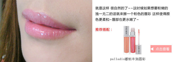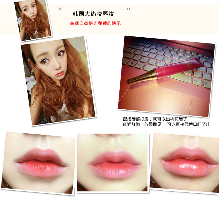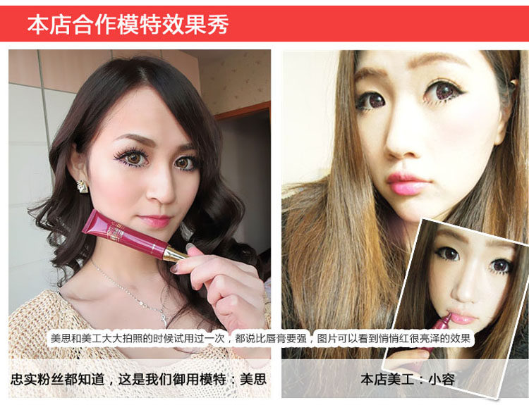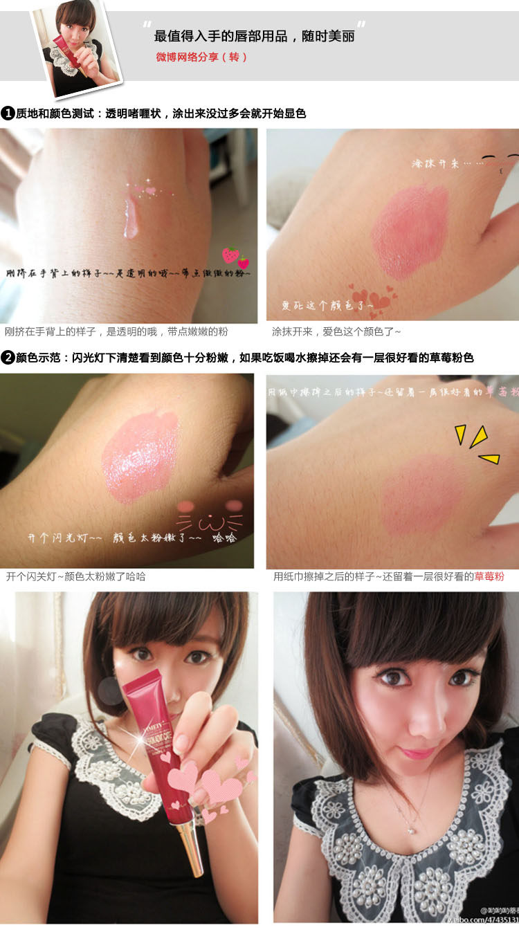 This lip gloss with super tender, even the lip are covered, and superwaterproof, how clean can't wipe off, the effect is natural, big love,recommend oh...