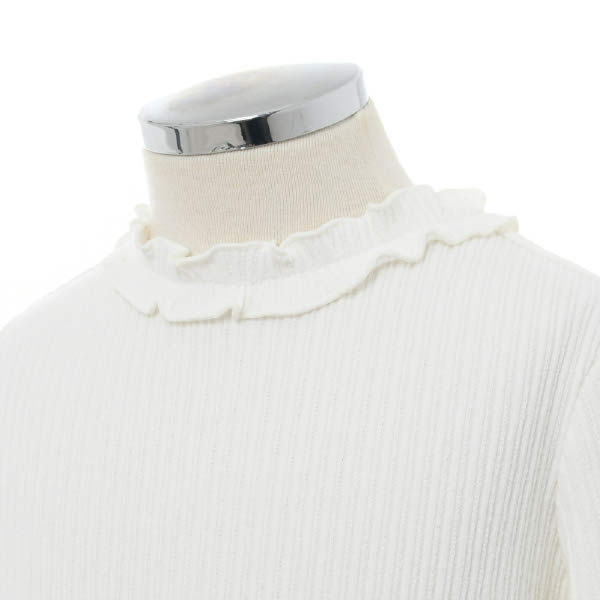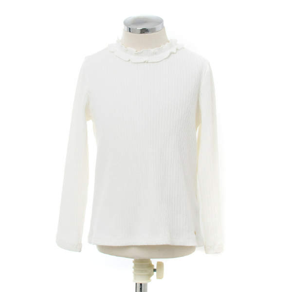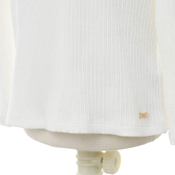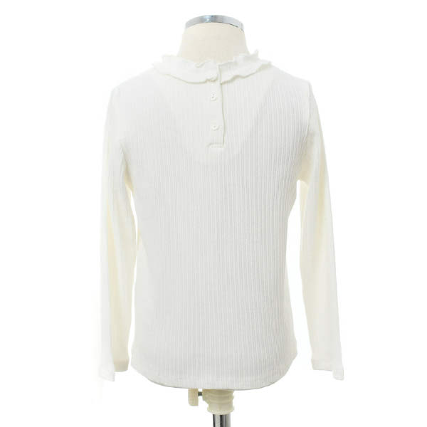 - 넥라인에 프리 장식 포인트를 준 아이보리 골지 티셔츠.