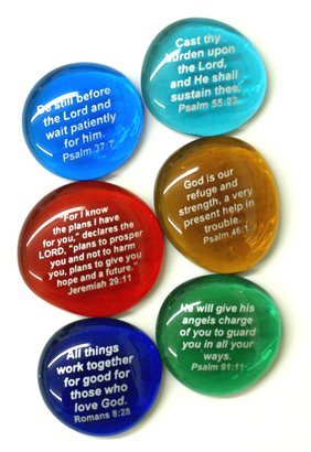 Scripture Glass Stones, 6 of Your Favorite Inspiring Bible Verses on Translucent and Opaque Rocks, by Lifeforce Glass. Set II