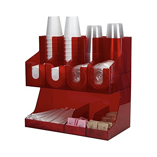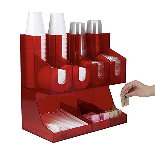 Studio : EMS Mind Reader LLC Publisher : EMS Mind Reader LLC Binding : Kitchen Product Description One piece coffee condiment organizer is made from a tough and safe plastic that will stand the test of time. This unit has 11 oversized compartments that is a necessity for any large Breakroom or lunchroom. Upscale acrylic looking unit sure to be a big hit. 0