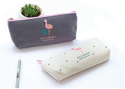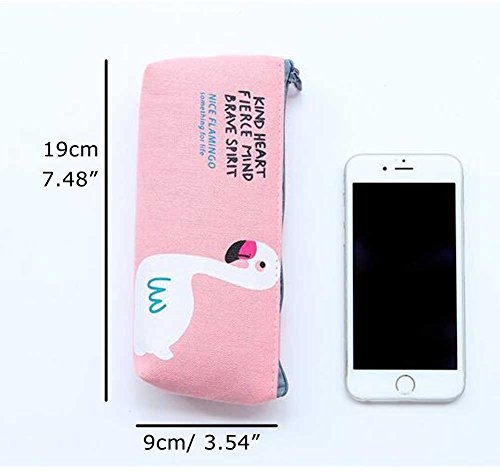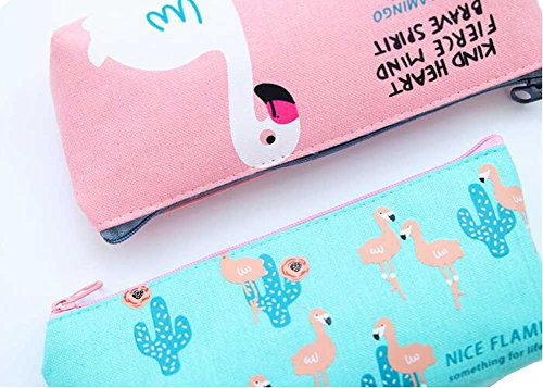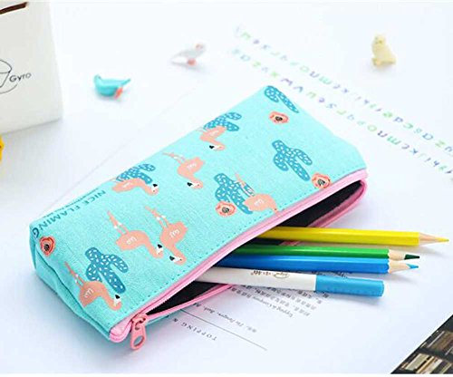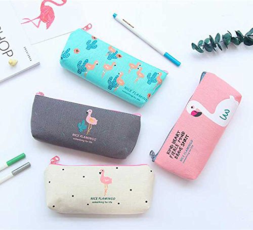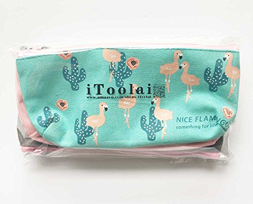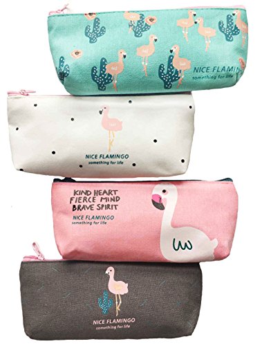 iToolai Canvas Pen Pencil Case Bag Zipper Travel Pouch Cosmetic Bags (Pack of 4, Flamingo and Cactus)
