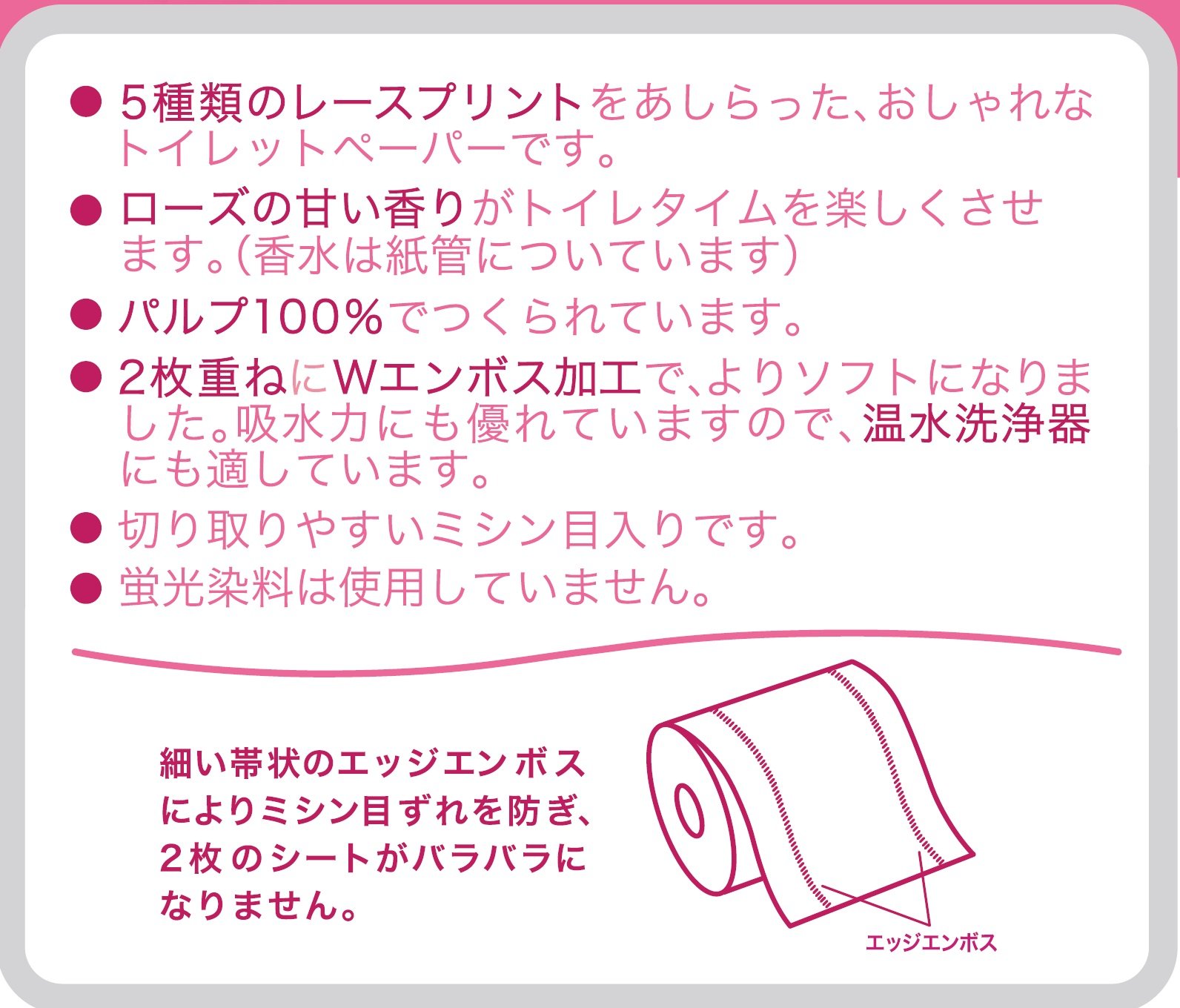 ● The sweet scent of rose makes toilet time fun.