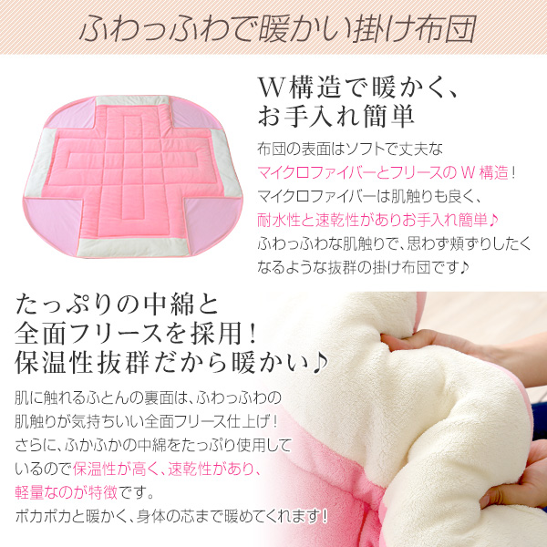 マイクロファイバー使用!ピンクカラーの省スペースこたつ布団【幅65-80cm・正方形こたつ対応】(こたつ布団単品)