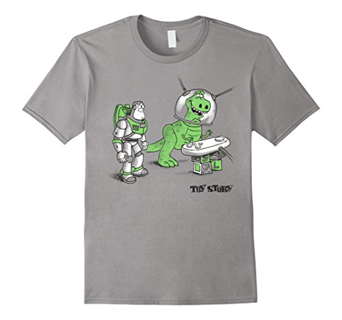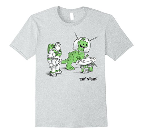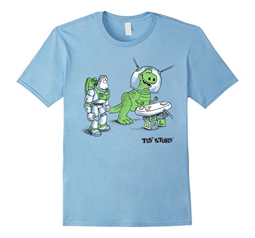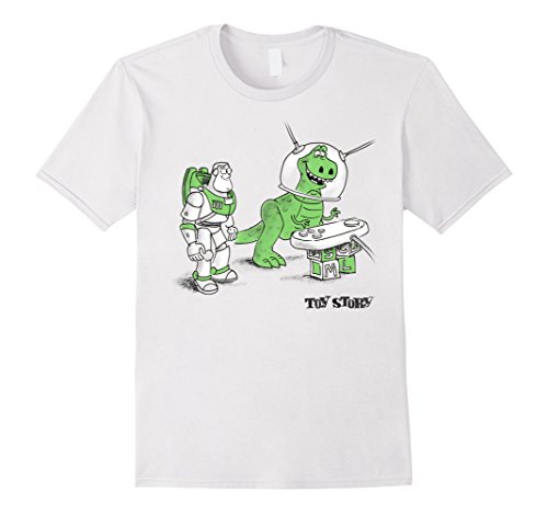 There's always room for a little imagination and the Toy Story Buzz and Rex Graphic T-Shirt! Buzz Lightyear and Rex play Space Command with a remote control on this funny Toy Story shirt.Feature