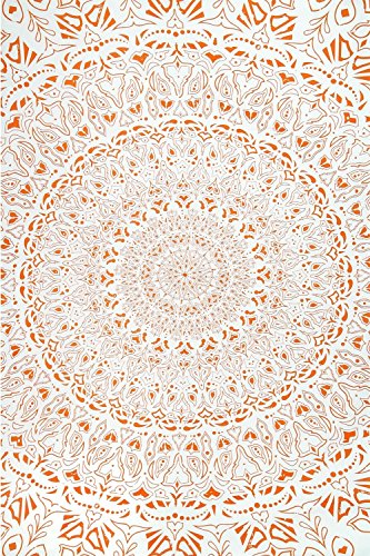 Zest For Life Tropical Island Mandala Tapestry Tablecloth Beach Sheet Wall Art 80x52 Inches Orange - FREE Sticker Included