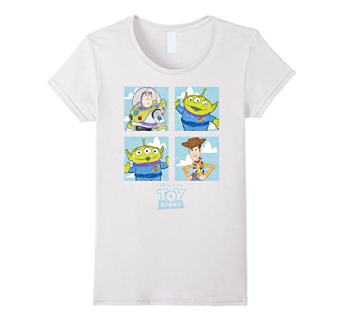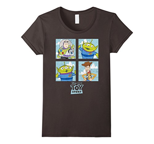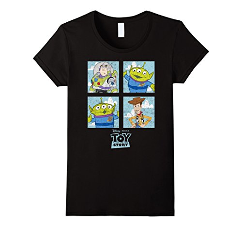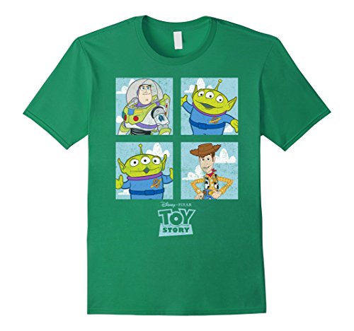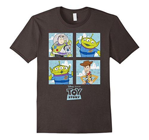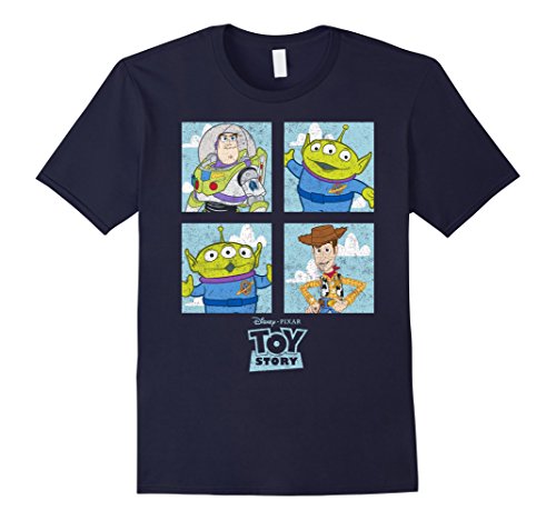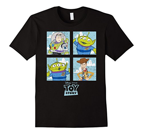 Grab a toy and the Toy Story Character Box Graphic T-Shirt and head to Pizza Planet with Andy and his gang of friends! Buzz Lightyear, Woody, and two of the Squeeze Toy aliens smile at you from this awesome Toy Story shirt!Feature