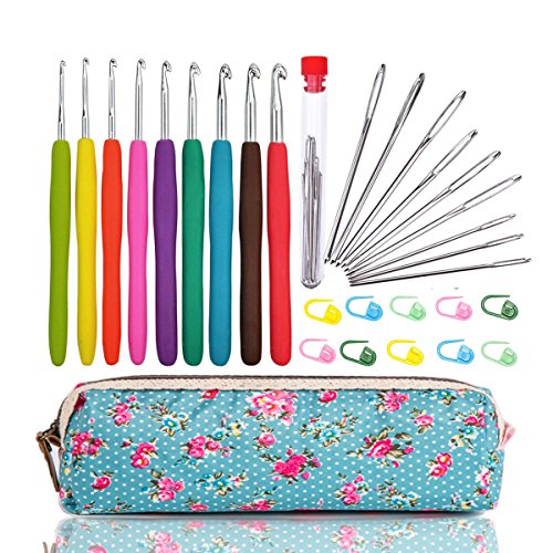 ★★If you got this Bargain.You would never regret it!!! The 9 pieces large-eye blunt needles alone Value 7$,you can search it on amazon★★ You get Ergonomic Crochet Hooks,Case & Blunt Needles...whole set now. These large eye Nickel-Plated Steel blunt yarn needles are good for weaving in ends and sewing up seams on your crochet and knitting projects. You get 9 pieces needles in three different SIZE( 5.2 cm,6 cm,7 cm) that work great for different weighted yarn.
