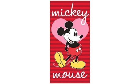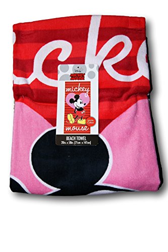 Featuring a large colorful print of Disney's Mickey Mouse, this plush, soft cotton beach towel will keep your child trendy, happy and dry. Care instructions: machine washable. Measures 28W x 58L Fabric content: 100 percent cotton