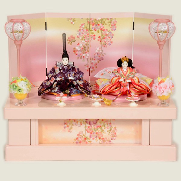 ・台座・屏風等には落ち着いた色目の雛人形セット。