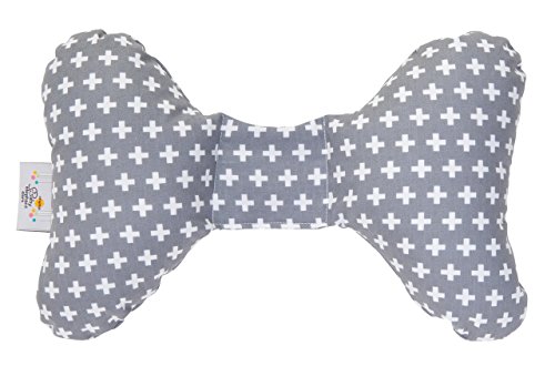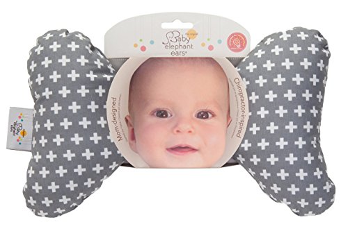 Baby Elephant Ears Head Support Pillow for Car Seat, Stroller, Swing, Bouncer, Changing Table (Grey Cross)
