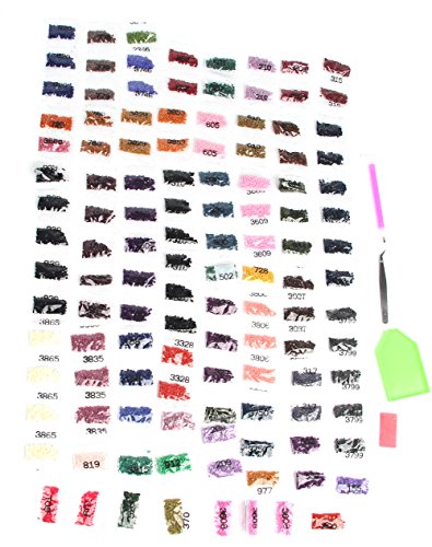 5D Diamond painting includes: oil painting canvas, diamond-cut color resin beads, stone tray and tweezers tools for sticking the resin beads on the canvas.