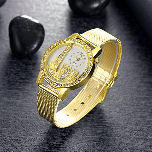 Naivo women's quartz watch, gold with Paris skyline dial