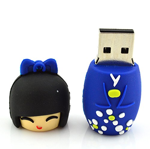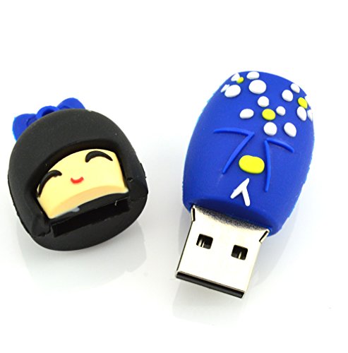 Cute Japanese Doll Design USB Flash Drive Memory stick (32GB Blue)