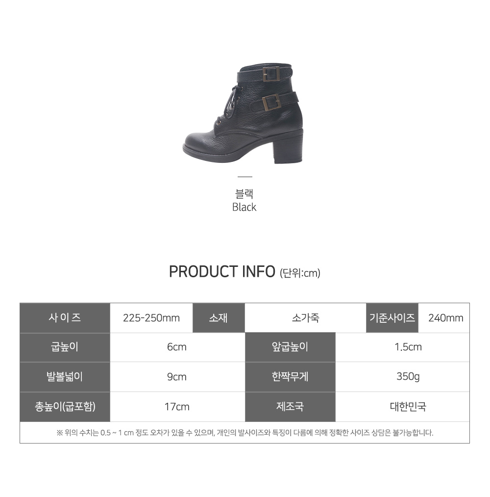 안쪽에 지퍼클로징으로 신고벗기 편안하게 제작되었으며, 장시간 착화에도 편안해요~부담없는 6cm의 굽높이로 각선미를 이쁘고 날씬하게 만들어 드리는 매력만점 워커를 만나보실 절호의 찬스예요 XD