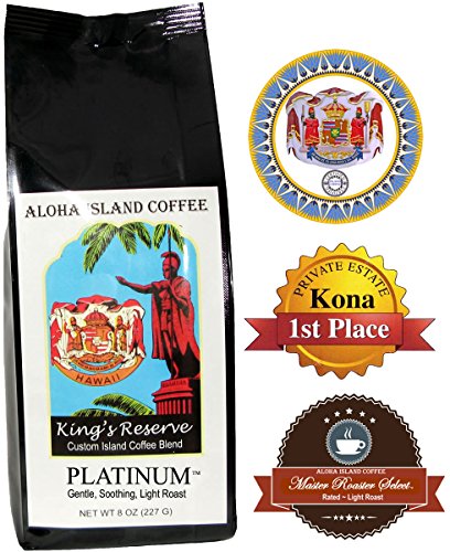 -. Title : Kona Hawaiian Coffee, Exclusive Kings Reserve Custom Blends and Roasts, Including Medium, Light, Espresso and Water Process Decaf, 8 Oz Whole Bean