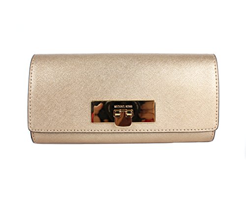 -. Binding : Apparel -. Brand : Michael Kors -. Color : pale gold -. Department : womens -. EAN : 0190864407647 -. Feature : Gold Tone hardware, saffiano leather / Turn-lock closure, MK signature fabric lining / Interior features 1 zip pocket and 10 card slots / Exterior slip pocket at rear / Approximate Measurements: 7.5" W x 3.75" H x 1.5" D -. Model : 35H6MYAE9M -. ProductGroup : Apparel -. ProductTypeName : ACCESSORY -. Size : one size -. Title : MICHAEL Michael Kors Callie Carryall Wallet in Pale Gold, Style No. 35H6MYAE9M -. UPC : 190864407647