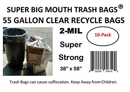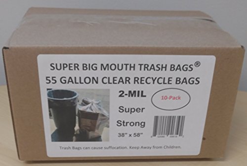 Super Big Mouth Trash Bags® 55 Gallon CLEAR Recycle Trash Garbage Bags 2-MIL 38"W x 58"H - 10 Pack