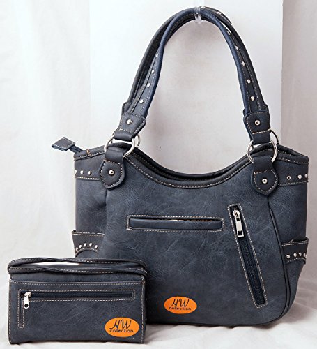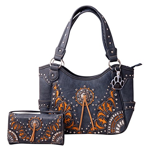 HW Collection Western Purse Flower Concho Fringe Tassel Concealed Carry Handbag and Wallet Set