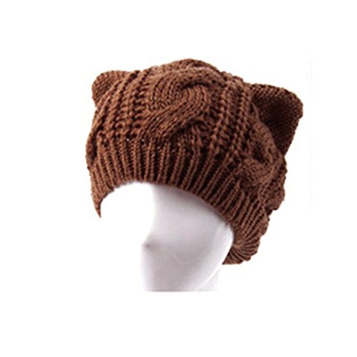Foxnovo Crochet Geflochtene Wollmutze Katze Ohr Shaped Womens Madchen Beanie Cap (Kaffee)
