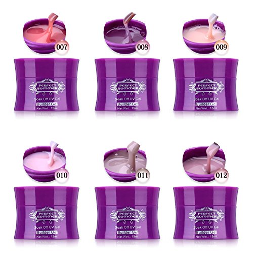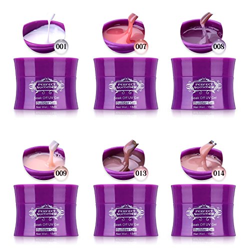 -. Feature : Package Content: 6 x Builder Gel (15ml/bottle) / Long Wearing: can last up to 14-21 days when applied properly! / No chipping or peeling, and can be soaked off completely in 10-15 minutes. / Notice: requires cure under the UV/LED lamp. / Perfect for professional salon beauty shop or at home personal use. Suitable for natural nails, UV gel nails, false nails, acrylic nails, nail tips, etc.