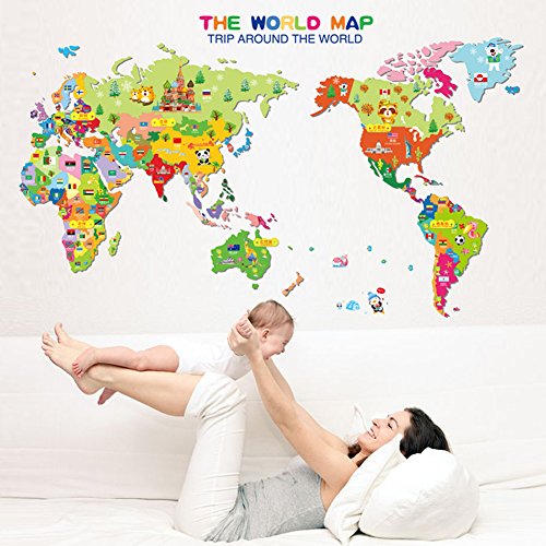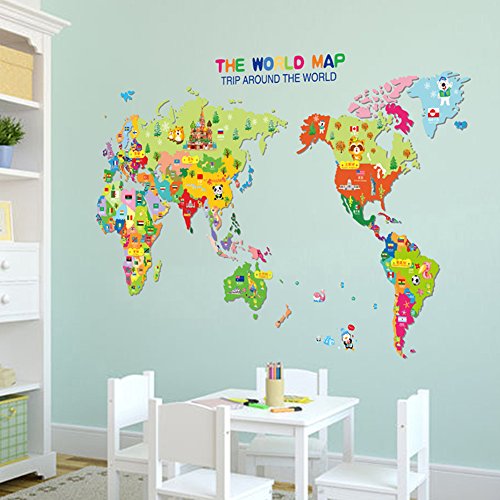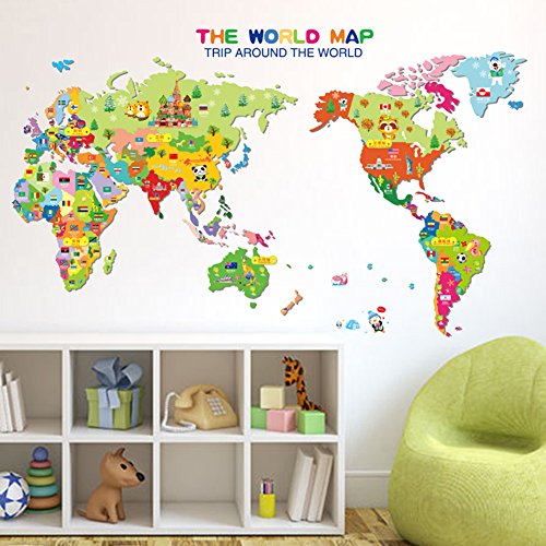 -. Title : Wowall Children's Bedroom Decor Trip Around the World Cartoon Map of the World Wall Decals