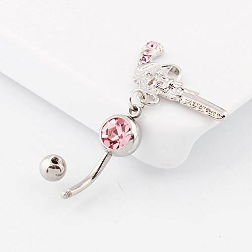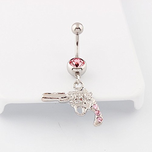 IrbingNii Gun shape Dangle Belly Ring Navel Bar Stud Body Piercing Pink
