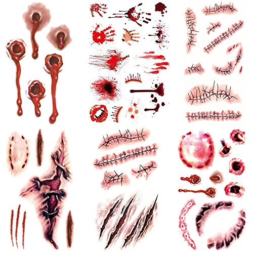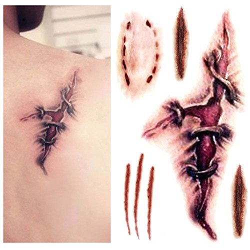 ZLTFashion 10Pcs Halloween Zombie Scars Tattoos With Fake Scab Bloody Bite Mark Costume Makeup Halloween Decoration Terror Wound Scary Blood Injury...