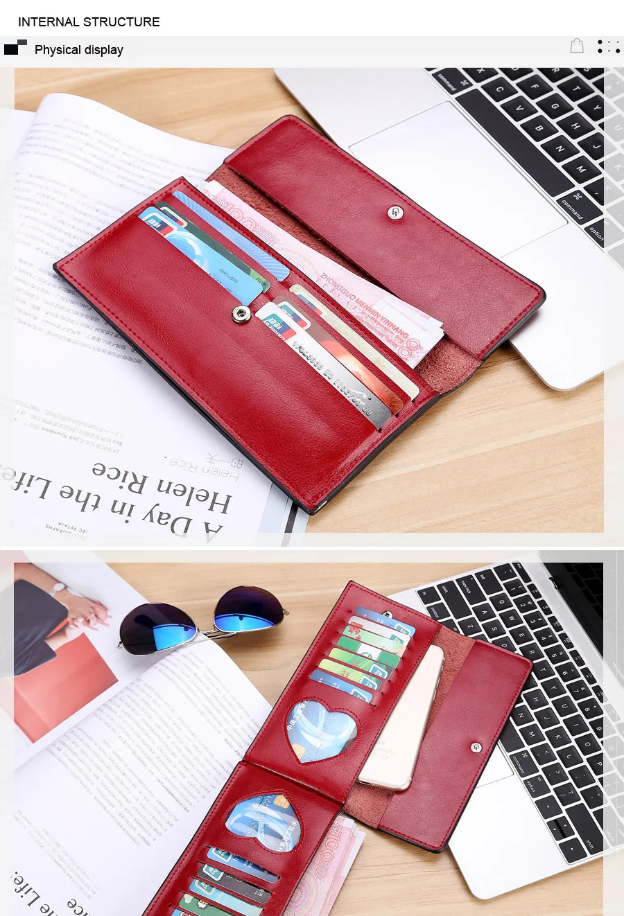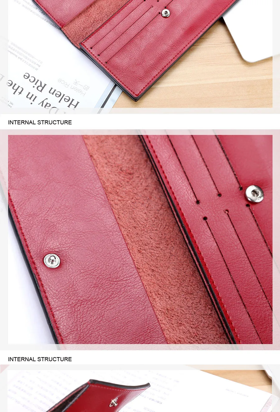 Interior:Cell Phone Pocket,Card Holder,Photo Holder,Note Compartment
