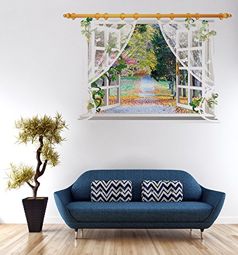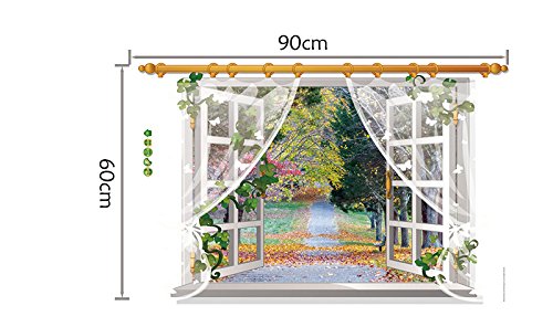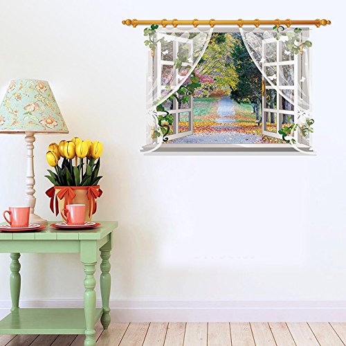 ChezMax 3D Window Scenery Wall Art Sticker Removable Wall Decal for Home Decoration