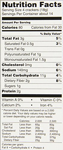-. Feature : Baked with 10 Whole Grains-#1 Ingredient / 7g whole grains in every serving / 4 grainsfirst crackers = 1 serving whole grains! / 0g Transfat / Ideal to eat alone or with toppings