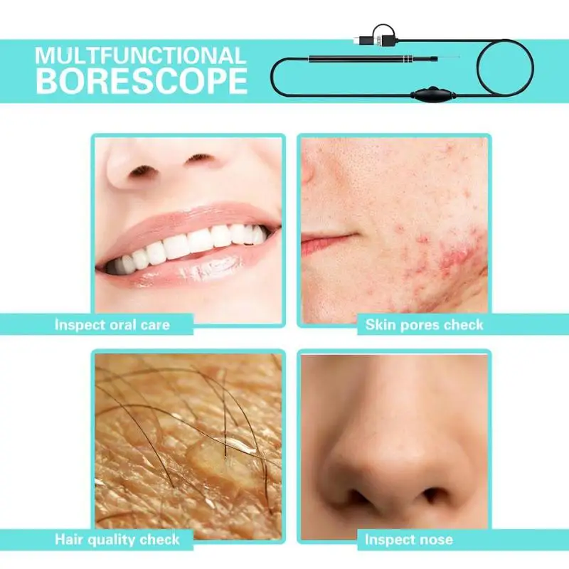 | 3 in 1 Ear Cleaning Endoscope 0.3MP Snake Visual Earpick USB Inspection 6 LED Borescope Camera Feature: 1. With electronic micro-camera, you can achieve real-time observation of the whole process of dig earwax through the USB data cable. 2. Ultra small lens with HD pixels, easy access ear canal and see more clearly. 3. 6pcs LED lamp brightness can be adjusted by dimmer button of the control box according to your need. 4. Suitable for daily cleaning care, ear disease patients can also observe the ear canal. 5. A essential tool for each family. Specification: Lens: 5.5mm Pixel: 0.3MP Focus distance: 1.5cm/0.59'' Material: plastic, metal Pen length: about 15cm/5.9'' Color: Black Product size: approx.200*3*3cm/78.74*1.18*1.18'' Connection: provide OTG function for Android system for Windows PC. Note: Please allow 1-3mm differs due to manual measurement. Due to the different display and different light, the picture may not show the actual color of the item. Thanks for your understanding. 1 x Endoscope 1 x Earmuff 1 x Protective Sleeve 1 x Camera Protective Sleeve 1 x Annular 1 x Oral Endoscope 1 x Cleaning Cloth 1 x User Manual |