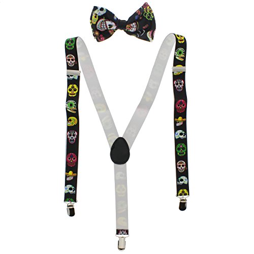 (Zac's Alter Ego)/Accessories/Suspenders Cummerbunds/DIRECT FROM USA/Zac's Alter Ego Day of the Dead Sugar Skull Suspenders Bow Tie Set
