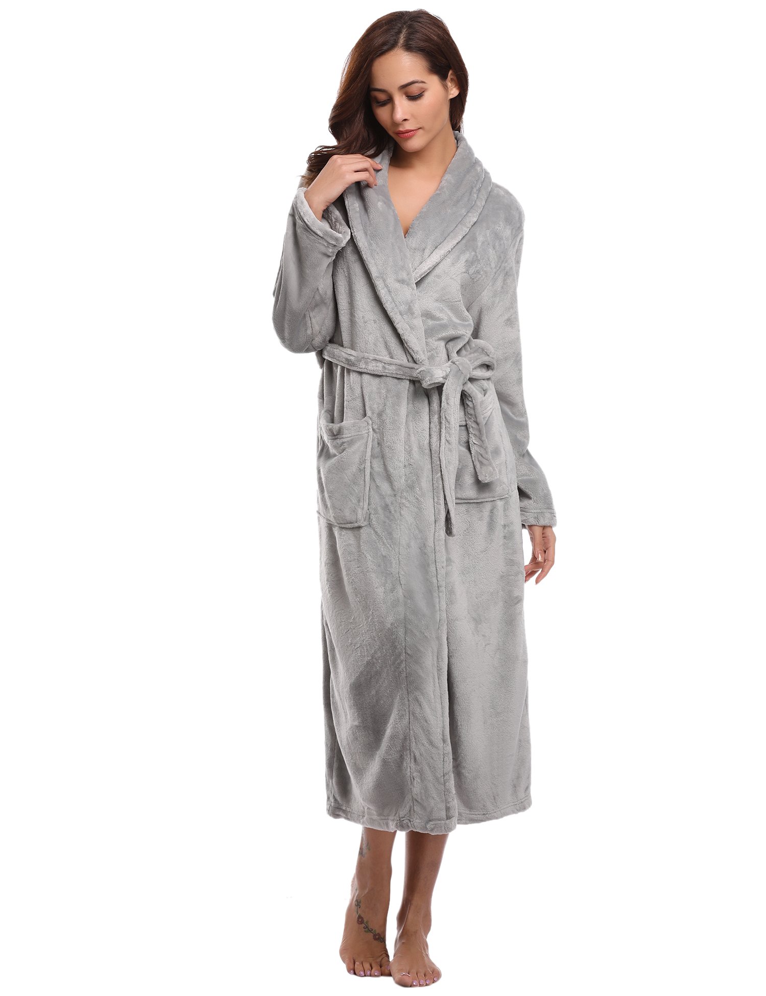 】 Coral fleece coral pile material Bathrobe solid color · pure color Also soft texture Fluffy pockets with belt Long length