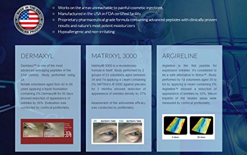 -. Feature : BEST SELLER. Celeb Cream is a multi-active all-in-one anti-aging complex. Initially developed for Celebrities to use before going on stage, Celeb Cream is now available to you to erase the look of aging skin, fine lines, stress and wrinkles. / PHARMACEUTICAL GRADE. 1.69oz (48g) - 45 days supply. Pharmacist Formulated. Dermatologist Recommended. Adored by Celebrities. Paraben Free. Not tested on animals. / MATRIXYL 3000 is a revolutionary formula in itself. Study performed by 2 groups of 23 volunteers aged between 39 and 74 applying a cream containing 3% MATRIXYL® 3000 against placebo for 2 months showed reduction of appearance of wrinkles density by 37% . / ARGIRELINE helps to reduce the appearance of frown lines and furrows between the eyebrows, while stimulating the growth of collagen. / DERMAXYL is a cell-communicating peptide complex with the ability to smooth wrinkles and provide firming benefits to aging skin. In fact, research shows that this peptide provides a dramatic reduction in the appearance of depth, surface area, and volume of wrinkles. Combined with Ceramide 2, which strengthens the skin barrier, this is one of the most advanced anti-aging ingredients of the 21st century.