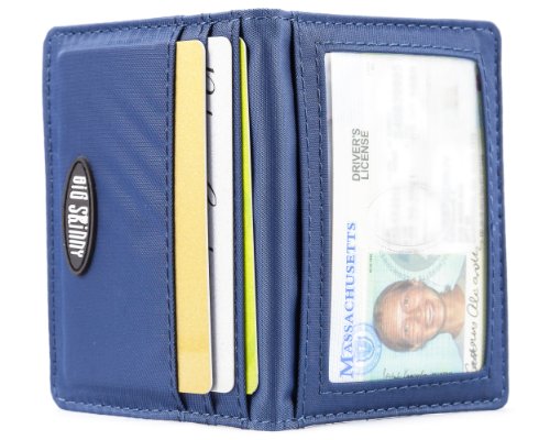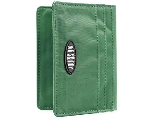 Studio : Big Skinny Publisher : Big Skinny Binding : Sports Product Description Great for commuters who need to quickly flash transit cards and work badges, the New Yorker wallet from Big Skinny features two ID pockets with clear windows and thumb-activated holes for quick and easy card access. The New Yorker also features six pockets that hold three plastic cards apiece. The extra-wide pockets are lined with a rubbery coating to prevent cards from slipping out. Designed with rounded corners for comfort, it's constructed of a lightweight, water resistant nylon microfiber material that is 5 to 7 times thinner and lighter than leather. It's machine washable for easy care and it dries out in about 20 minutes. The New Yorker wallet measures 4 x 3 Inch (and 6 mm thin when empty). The __ wallet measures __ x __ Inch (and __ mm thin when empty). The first Big Skinny wallet was designed by Kiril Stefan Alexandrov (the company's founder) because he loathed sitting on a thick, heavy leather wallet. Since creating the original Sport Wallet in 2005 using an advanced nylon micro-fiber material (5 to 7 times thinner than leather), Big Skinny has added dozens of slim wallet styles for men and women with more on the way. 0