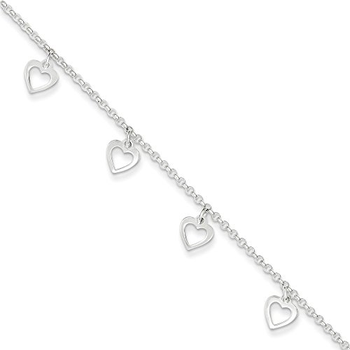 -. Feature : .925 Sterling Silver / Finish: Polished / Polished Heart Anklet Bracelet, 9 Inches / Clasp: Lobster / Length: 9 Inches / Width: 1.50 Millimeters / Approximate Weight: 3.05