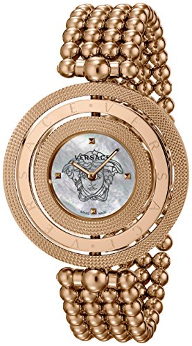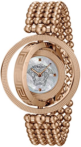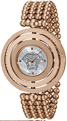 When Versace introduced their magnificent this Eon timepiece it quickly became an instant classic. The iconic design is resplendent with Versace imagery, including the famous Versace Medusa head in middle of the case. Featuring two reversible bezels engraved with Versace and Greca emblem including the Clouse de Paris finish this watch is a triumph. This timepiece is powered by an ISA K62/132 Swiss Quartz movement to enable its preciseness wherever you go. The fashionable mother of pearl dial with four dot indices and a rose gold IP stainless steel case is water resistant to 99 feet. If you'd like to maximize the enjoyment you get from wearing a fine timepiece, you need to experience the delicate baroque beauty of an Eon on your wrist.
