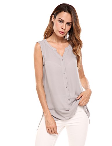 -. Title : Zeagoo Women's Semi-Sheer V Neck Summer Button Chiffon Sleeveless Blouse Office Tank Top