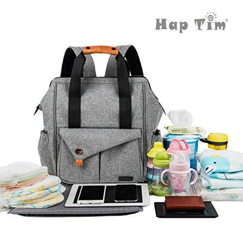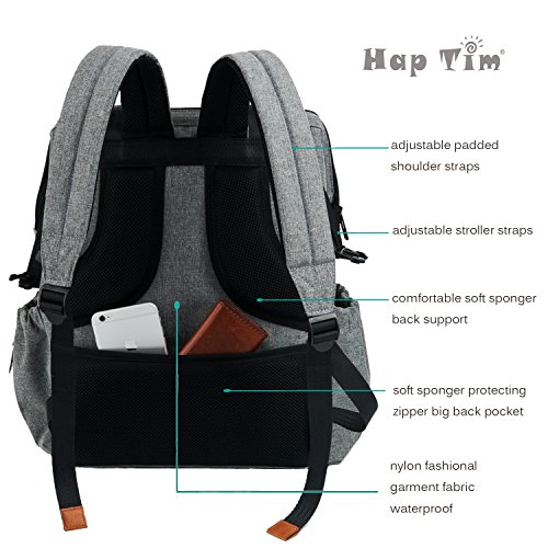HapTim Multi-function Baby Diaper Bag Backpack with Stroller Straps, Gray