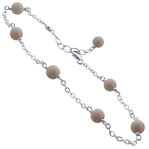 -. Title : Gem Avenue Sterling Silver Simulated White Agate Adjustable Anklet