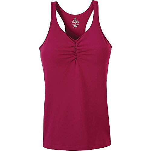 The updated prAna Sabin T-Back Top features the same quick-drying and shape-retaining Chakara performance fabric you've come to love, with new styling. A gathered front, ventilated back, and updated racerback look amazing and improve performance. Interior shelf bra with removable modesty cups.Feature